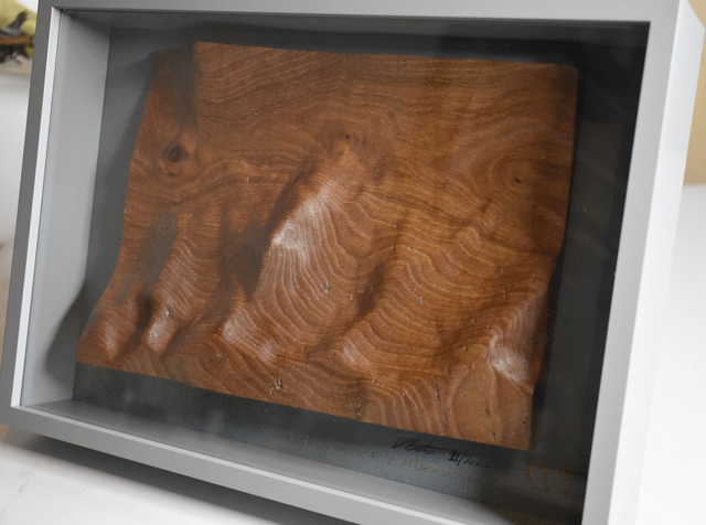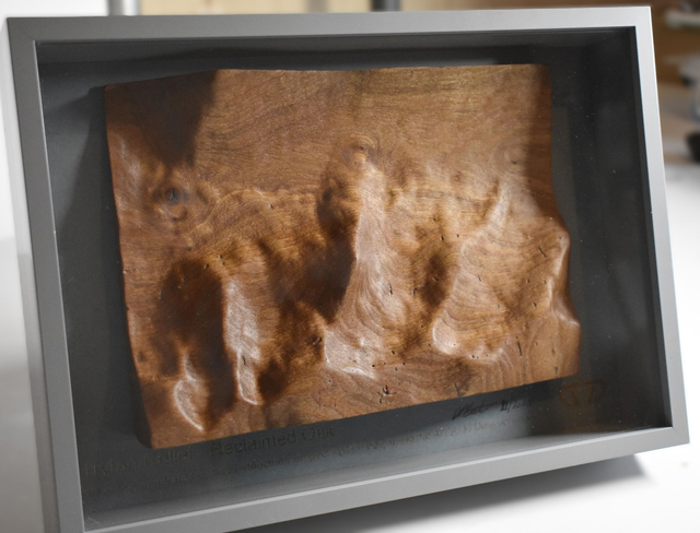 Tryfan relief map in reclaimed Oak.